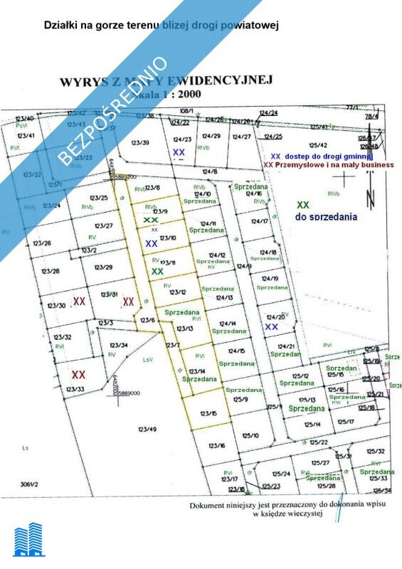 Działki pod budownictwo mieszkaniowe, na nieuciazliwy przemysł i usługi w Gorzeniu gm. Nakło. Ponad 20-cia jest już sprzedanych. Zostało jeszcze około sporo do sprzedania. Atrakcyjne położenie pomiędzy Bydgoszczą a Nakłem. Znakomity dojazd do Bydgoszczy. Kilka położonych niedaleko lasu od strony wschodniej. Ostatnio podzielone, najtansze są dalej od drogi powiatowej do Nakła, w bardzo spokojnym miejscu. Załączone zdjęcia pokazuję mapki i położenie wszystkich oferowanych działek. Podaję cenę przykładową jednej dzialki położonej bliżej drogi powiatowej. Jest to działka 123/10 o powierzchni 1052m2. Dla tej dzialki cena jest 119 PLN za m2Np. Najmniejsza działka w naszej ofercie, Działka 124/17, ma cenę 147.00 za m2. Najnowsze podzielone działki, troszkę dalej od drogi powiatowej mają ceny od 79.00 za m2. Zachęcam do oglądania działek, znalezienia najbardziej odpowiadającej i powrót do mnie z pytaniami.Ogłoszenie dodane do wielu portali nieruchomości przez portal www.odwlasciciela.pl